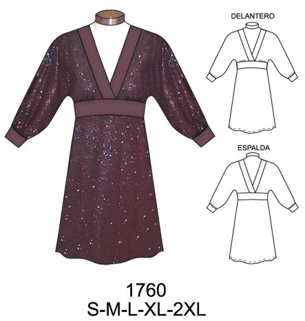 1760 VESTIDO KIMONO CRUZADO$9.0$7.0Telas: jérsey lycra.Consumo talla l: tela brillante: 1.25 mts. aprox. tela lisa: 30 cms. aprox.Material Choose an optionPapelCarton cortadoPDFTallas Choose an optionSMLXL2XLClear - 1760 VESTIDO KIMONO CRUZADO quantity + Add to cart SKU: 1760 Categories: Dama, Dresses Description Additional information DescriptionTabla de medidas ¿Cómo imprimir moldes PDF?Additional informationMaterialPapel, Carton cortado, PDFTallasS, M, L, XL, 2XLRelated products E90 POLERA ESCOTE EN V CON RUCHAS Y CORTE CENTRAL MANGA 3/4 $9.0$7.0 Select options This product has multiple variants. The options may be chosen on the product page 4718 BLUSA RUEDO HOLGADO MANGA 3/4 $9.0$7.0 Select options This product has multiple variants. The options may be chosen on the product page 4694 BLUSA CON APLICACION EN MACRAME Y RUEDO AMPLIO $9.0$7.0 Select options This product has multiple variants. The options may be chosen on the product page 4723 BLUSA MANGA KIMONO, LARGO ASIMETRICO COSTADO CURVO $9.0$7.0 Select options This product has multiple variants. The options may be chosen on the product page