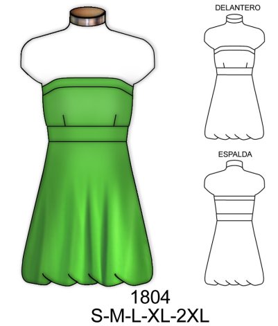 1804 MINI VVESTIDO GLOBO STRAPLESS$9.0$7.0Telas: Jersey lycra. Consumo de tela talla L: 1.50 mts. Aprox.Material Choose an optionPapelCarton cortadoPDFTallas Choose an optionSMLXL2XLClear - 1804 MINI VVESTIDO GLOBO STRAPLESS quantity + Add to cart SKU: 1804 Categories: Dama, Dresses, Women's T-shirts Description Additional information DescriptionTabla de medidas ¿Cómo imprimir moldes PDF?Additional informationMaterialPapel, Carton cortado, PDFTallasS, M, L, XL, 2XLRelated products 4706 BLUSA MANGA 3/4 Y DOBLE FALDON CON VUELO Y AMARRA EN LA ESPALDA $9.0$7.0 Select options This product has multiple variants. The options may be chosen on the product page 4713 BLUSA RUEDO AMPLIO, ESPALDA ESCOTADA CON DRAPEADO $9.0$7.0 Select options This product has multiple variants. The options may be chosen on the product page E621 POLERA CON CUELLO DRAPEADO ESCOTE V, MANGAS Y ESPALDA EN GASA, PUÑO CON ABERTURA Y AMARRAS $9.0$7.0 Select options This product has multiple variants. The options may be chosen on the product page X214 CORTAVIENTO CORTO $9.0$7.0 Select options This product has multiple variants. The options may be chosen on the product page