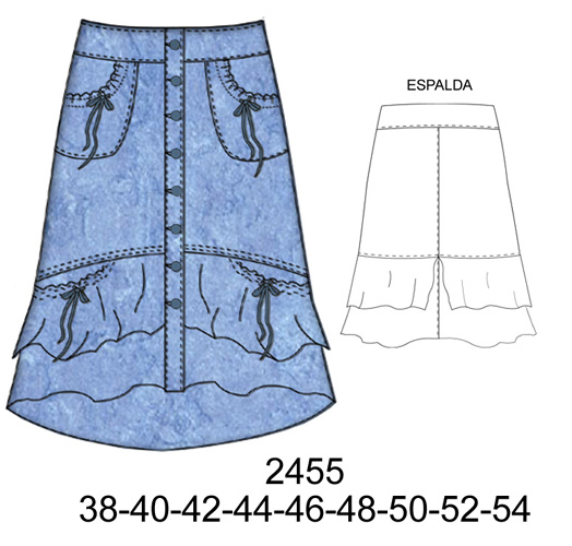 2455 FALDA LARGA CON BOLSILLOS, FALDON CON 2 CAPAS$9.0$7.0CONSUMO TELA 2.10 METROS APROX. TALLA (L). TELA :LINO – MEZCLILLA 7ONZ.Material Choose an optionPapelCarton cortadoPDFTallas Numericas Choose an option384042444648505254Clear - 2455 FALDA LARGA CON BOLSILLOS, FALDON CON 2 CAPAS quantity + Add to cart SKU: 2455 Categories: Dama, Skirts Description Additional information DescriptionTabla de medidas ¿Cómo imprimir moldes PDF?Additional informationMaterialPapel, Carton cortado, PDFTallas Numericas38, 40, 42, 44, 46, 48, 50, 52, 54Related products 4730 BLUSA CON CUELLO CRUZADO PLIEGUE CENTRAL, RUEDO SEMI EVASE $9.0$7.0 Select options This product has multiple variants. The options may be chosen on the product page 4723 BLUSA MANGA KIMONO, LARGO ASIMETRICO COSTADO CURVO $9.0$7.0 Select options This product has multiple variants. The options may be chosen on the product page 4712 BLUSA MANGA RAGLAN Y RUEDO AMPLIO SIN BOTONES $9.0$7.0 Select options This product has multiple variants. The options may be chosen on the product page E93 POLERA CON VUELOS MANGA LARGA $9.0$7.0 Select options This product has multiple variants. The options may be chosen on the product page