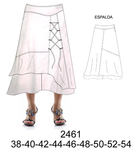 2461 FALDA ASIMETRICA CON AMARRA LATERAL 2 CAPAS, LARGO 67CMS APROX