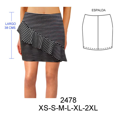2478 FALDA MINI CON VUELO DIAGONAL$9.0$7.0CONSUMO TELA 0.60 METROS TALLA L APROX TELA: LYCRA NYLON – LYCRA ALGODON DELGADAMaterial Choose an optionPapelCarton cortadoPDFTallas Choose an optionXSSMLXL2XLClear - 2478 FALDA MINI CON VUELO DIAGONAL quantity + Add to cart SKU: 2478 Categories: Dama, Skirts Description Additional information DescriptionTabla de medidas ¿Cómo imprimir moldes PDF?Additional informationMaterialPapel, Carton cortado, PDFTallasXS, S, M, L, XL, 2XLRelated products 4714 BLUSON CON ELASTICO EN ESCOTE, CORTES EN RUEDO Y MANGA PARA COMBINACIONES $9.0$7.0 Select options This product has multiple variants. The options may be chosen on the product page 4712 BLUSA MANGA RAGLAN Y RUEDO AMPLIO SIN BOTONES $9.0$7.0 Select options This product has multiple variants. The options may be chosen on the product page E94 POLERA CON CUELLO Y CANESU PLIZADO $9.0$7.0 Select options This product has multiple variants. The options may be chosen on the product page 4694 BLUSA CON APLICACION EN MACRAME Y RUEDO AMPLIO $9.0$7.0 Select options This product has multiple variants. The options may be chosen on the product page