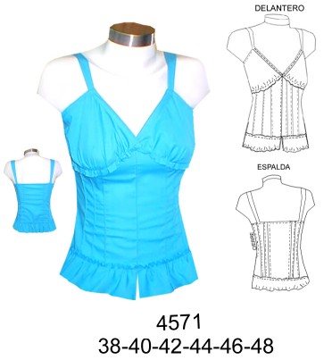 4571 BLUSA CON TIRANTES$9.0$7.0Material Choose an optionPapelCarton cortadoPDFTallas Numericas Choose an option384042444648Clear - 4571 BLUSA CON TIRANTES quantity + Add to cart SKU: 4571 Categories: Blouses, Dama Description Additional information DescriptionTabla de medidas ¿Cómo imprimir moldes PDF?Additional informationMaterialPapel, Carton cortado, PDFTallas Numericas38, 40, 42, 44, 46, 48Related products 4699 BLUSA ESCOTE ESPALDA EN V CON DOBLE TIRANTES Y HOMBRO DESCUBIERTO $9.0$7.0 Select options This product has multiple variants. The options may be chosen on the product page E621 POLERA CON CUELLO DRAPEADO ESCOTE V, MANGAS Y ESPALDA EN GASA, PUÑO CON ABERTURA Y AMARRAS $9.0$7.0 Select options This product has multiple variants. The options may be chosen on the product page E94 POLERA CON CUELLO Y CANESU PLIZADO $9.0$7.0 Select options This product has multiple variants. The options may be chosen on the product page 4712 BLUSA MANGA RAGLAN Y RUEDO AMPLIO SIN BOTONES $9.0$7.0 Select options This product has multiple variants. The options may be chosen on the product page