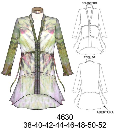 4630 TUNICA CORTE BAJO BUSTO CON AMARRA AJUSTABLE, FALDON RECOGIDO$9.0$7.0CONSUMO TELA 2 METROS APROX. TALLA (46) TELA : GASAMaterial Choose an optionPapelCarton cortadoPDFTallas Numericas Choose an option3840424446485052Clear - 4630 TUNICA CORTE BAJO BUSTO CON AMARRA AJUSTABLE, FALDON RECOGIDO quantity + Add to cart SKU: 4630 Categories: Blouses, Dama Description Additional information DescriptionTabla de medidas ¿Cómo imprimir moldes PDF?Additional informationMaterialPapel, Carton cortado, PDFTallas Numericas38, 40, 42, 44, 46, 48, 50, 52Related products E94 POLERA CON CUELLO Y CANESU PLIZADO $9.0$7.0 Select options This product has multiple variants. The options may be chosen on the product page 4714 BLUSON CON ELASTICO EN ESCOTE, CORTES EN RUEDO Y MANGA PARA COMBINACIONES $9.0$7.0 Select options This product has multiple variants. The options may be chosen on the product page 4723 BLUSA MANGA KIMONO, LARGO ASIMETRICO COSTADO CURVO $9.0$7.0 Select options This product has multiple variants. The options may be chosen on the product page 4744 BLUSA ESTILO OVERSIZE $9.0$7.0 Select options This product has multiple variants. The options may be chosen on the product page