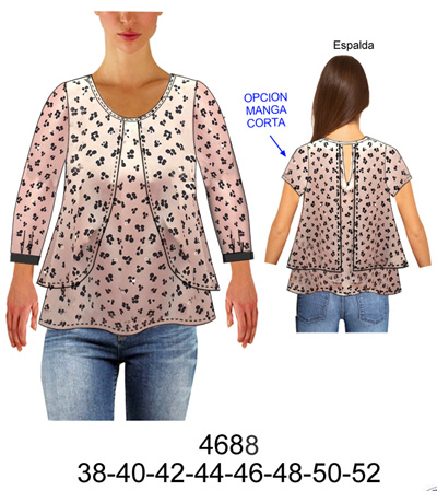 4688 BLUSA CORTE TRAPECIO CON CAPAS$9.0$7.0CONSUMO 1.80 METROS APROX. TALLA (46) TELA :VISCOSA – CREPE – SEDAMaterial Choose an optionPapelCarton cortadoPDFTallas Numericas Choose an option3840424446485052Clear - 4688 BLUSA CORTE TRAPECIO CON CAPAS quantity + Add to cart SKU: 4688 Categories: Blouses, Dama Description Additional information DescriptionTabla de medidas ¿Cómo imprimir moldes PDF?Additional informationMaterialPapel, Carton cortado, PDFTallas Numericas38, 40, 42, 44, 46, 48, 50, 52Related products 4723 BLUSA MANGA KIMONO, LARGO ASIMETRICO COSTADO CURVO $9.0$7.0 Select options This product has multiple variants. The options may be chosen on the product page 4711 BLUSA MANGA 3/4 CON AMARRA EN ESCOTE Y BOTONES $9.0$7.0 Select options This product has multiple variants. The options may be chosen on the product page X214 CORTAVIENTO CORTO $9.0$7.0 Select options This product has multiple variants. The options may be chosen on the product page 4707 BLUSA MANGA 3/4 TIPO KIMONO CON AMARRA EN ESCOTE Y BOLSILLO EN DELANTERO $9.0$7.0 Select options This product has multiple variants. The options may be chosen on the product page