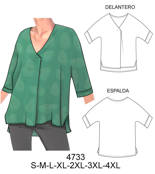 4733 BLUSA KIMONO ESCOTE EN V CON PLIEGUE CENTRAL EN DELANTERO, RUEDO ASIMETRICO$9.0$7.0CONSUMO TELA: 1.60 METROS TALLA L TELA: VISCOSA – SEDA – CREPEMaterial Choose an optionPapelCarton cortadoPDFTallas Choose an optionSMLXL2XL3XL4XLClear - 4733 BLUSA KIMONO ESCOTE EN V CON PLIEGUE CENTRAL EN DELANTERO, RUEDO ASIMETRICO quantity + Add to cart SKU: 4733 Categories: Blouses, Dama Description Additional information DescriptionTabla de medidas ¿Cómo imprimir moldes PDF?Additional informationMaterialPapel, Carton cortado, PDFTallasS, M, L, XL, 2XL, 3XL, 4XLRelated products 4708 BLUSA MANGA KIMONO RUEDO AMPLIO $9.0$7.0 Select options This product has multiple variants. The options may be chosen on the product page E94 POLERA CON CUELLO Y CANESU PLIZADO $9.0$7.0 Select options This product has multiple variants. The options may be chosen on the product page E93 POLERA CON VUELOS MANGA LARGA $9.0$7.0 Select options This product has multiple variants. The options may be chosen on the product page 4699 BLUSA ESCOTE ESPALDA EN V CON DOBLE TIRANTES Y HOMBRO DESCUBIERTO $9.0$7.0 Select options This product has multiple variants. The options may be chosen on the product page