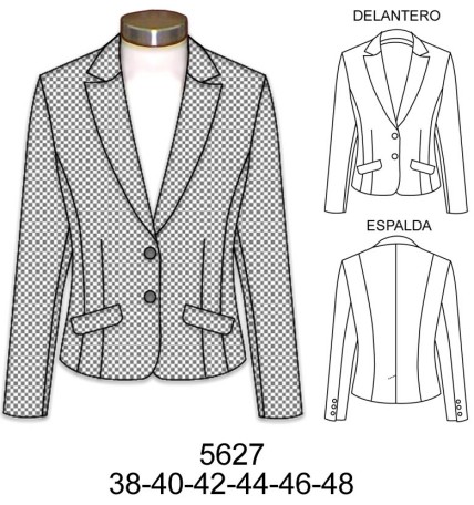 5587 BLAZER DAMA$9.0$7.0Telas: Piel, boucle, lana. Consumo talla 42: Tela: 1.60 mts. Forro: 1.30 mts. aprox.Material Choose an optionPapelCarton cortadoPDFTallas Numericas Choose an option384042444648Clear - 5587 BLAZER DAMA quantity + Add to cart SKU: 5627-22 Categories: Dama, Women's Suits-Jacket Description Additional information DescriptionTabla de medidas ¿Cómo imprimir moldes PDF?Additional informationMaterialPapel, Carton cortado, PDFTallas Numericas38, 40, 42, 44, 46, 48Related products 4713 BLUSA RUEDO AMPLIO, ESPALDA ESCOTADA CON DRAPEADO $9.0$7.0 Select options This product has multiple variants. The options may be chosen on the product page E90 POLERA ESCOTE EN V CON RUCHAS Y CORTE CENTRAL MANGA 3/4 $9.0$7.0 Select options This product has multiple variants. The options may be chosen on the product page E94 POLERA CON CUELLO Y CANESU PLIZADO $9.0$7.0 Select options This product has multiple variants. The options may be chosen on the product page X215 CORTAVIENTO CON CORTES $9.0$7.0 Select options This product has multiple variants. The options may be chosen on the product page