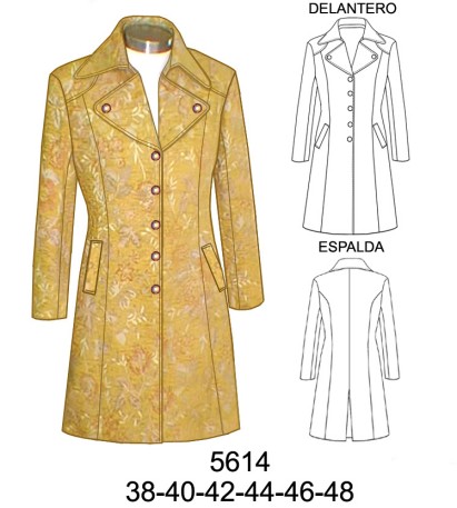 5614 CHAQUETON LARGO$9.0$7.0Telas: Lanilla.Consumo talla 46: tela: 2.20 mts. aprox. forro: 1.70 mt. Aprox.Material Choose an optionPapelCarton cortadoPDFTallas Numericas Choose an option384042444648Clear - 5614 CHAQUETON LARGO quantity + Add to cart SKU: 5614 Categories: Coats, Dama, Women's Suits-Jacket Description Additional information DescriptionTabla de medidas ¿Cómo imprimir moldes PDF?Additional informationMaterialPapel, Carton cortado, PDFTallas Numericas38, 40, 42, 44, 46, 48Related products 4714 BLUSON CON ELASTICO EN ESCOTE, CORTES EN RUEDO Y MANGA PARA COMBINACIONES $9.0$7.0 Select options This product has multiple variants. The options may be chosen on the product page X215 CORTAVIENTO CON CORTES $9.0$7.0 Select options This product has multiple variants. The options may be chosen on the product page 4730 BLUSA CON CUELLO CRUZADO PLIEGUE CENTRAL, RUEDO SEMI EVASE $9.0$7.0 Select options This product has multiple variants. The options may be chosen on the product page E94 POLERA CON CUELLO Y CANESU PLIZADO $9.0$7.0 Select options This product has multiple variants. The options may be chosen on the product page