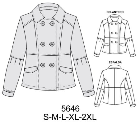 5646 CHAQUETA CRUZADA CUELLO CONVERTIBLE CON PINZAS EN MANGA$9.0$7.0TELA: GABARDINAMaterial Choose an optionPapelCarton cortadoPDFTallas Choose an optionSMLXL2XLClear - 5646 CHAQUETA CRUZADA CUELLO CONVERTIBLE CON PINZAS EN MANGA quantity + Add to cart SKU: 5646 Categories: Dama, Women's jacket, Women's Suits-Jacket Description Additional information DescriptionTabla de medidas ¿Cómo imprimir moldes PDF?Additional informationMaterialPapel, Carton cortado, PDFTallasS, M, L, XL, 2XLRelated products 4740 BLUSA ESCOTE “V” CON AMARRA, RECOGIDO EN DELANTERO Y ESPALDA MANGA 3/4, DISEÑO HOLGADO $9.0$7.0 Select options This product has multiple variants. The options may be chosen on the product page 4713 BLUSA RUEDO AMPLIO, ESPALDA ESCOTADA CON DRAPEADO $9.0$7.0 Select options This product has multiple variants. The options may be chosen on the product page 4694 BLUSA CON APLICACION EN MACRAME Y RUEDO AMPLIO $9.0$7.0 Select options This product has multiple variants. The options may be chosen on the product page 4712 BLUSA MANGA RAGLAN Y RUEDO AMPLIO SIN BOTONES $9.0$7.0 Select options This product has multiple variants. The options may be chosen on the product page