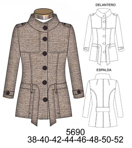 5690 CHAQUETON CUELLO ALTO CON CAPAS CORTES ESTILO MONTGOMERY$9.0$7.0CONSUMO TELA 2 METROS APROX. TALLA (46) -FORRO 1.30 METROS TELA :LANILLA, PAÑOMaterial Choose an optionPapelCarton cortadoPDFTallas Numericas Choose an option3840424446485052Clear - 5690 CHAQUETON CUELLO ALTO CON CAPAS CORTES ESTILO MONTGOMERY quantity + Add to cart SKU: 5690 Categories: Coats, Dama, Women's jacket Description Additional information DescriptionTabla de medidas ¿Cómo imprimir moldes PDF?Additional informationMaterialPapel, Carton cortado, PDFTallas Numericas38, 40, 42, 44, 46, 48, 50, 52Related products 4707 BLUSA MANGA 3/4 TIPO KIMONO CON AMARRA EN ESCOTE Y BOLSILLO EN DELANTERO $9.0$7.0 Select options This product has multiple variants. The options may be chosen on the product page X195 POLERON LARGO CORTE PRINCESA, GORRO DESBOCADO $9.0$7.0 Select options This product has multiple variants. The options may be chosen on the product page 4694 BLUSA CON APLICACION EN MACRAME Y RUEDO AMPLIO $9.0$7.0 Select options This product has multiple variants. The options may be chosen on the product page 4706 BLUSA MANGA 3/4 Y DOBLE FALDON CON VUELO Y AMARRA EN LA ESPALDA $9.0$7.0 Select options This product has multiple variants. The options may be chosen on the product page