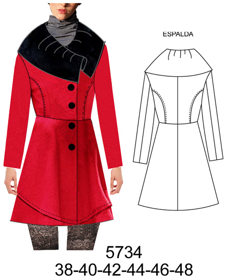 5734 CHAQUETON CUELLO GRANDE , CORTE PRINCESA. CORTE CINTURA LARGO 93 CMS