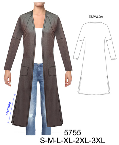 5755 TAPADO LARGO CON ABERTURA LATERAL, CORTE MIXTO, RAGLAN KIMONO$9.0$7.0CONSUMO TELA 1.80 METROS TALLA L APROX TELA: JERSEY LYCRAMaterial Choose an optionPapelCarton cortadoPDFTallas Choose an optionSMLXL2XL3XLClear - 5755 TAPADO LARGO CON ABERTURA LATERAL, CORTE MIXTO, RAGLAN KIMONO quantity + Add to cart SKU: 5755 Categories: Cardigan, Dama, Women's Suits-Jacket Description Additional information DescriptionTabla de medidas ¿Cómo imprimir moldes PDF?Additional informationMaterialPapel, Carton cortado, PDFTallasS, M, L, XL, 2XL, 3XLRelated products 4718 BLUSA RUEDO HOLGADO MANGA 3/4 $9.0$7.0 Select options This product has multiple variants. The options may be chosen on the product page 4744 BLUSA ESTILO OVERSIZE $9.0$7.0 Select options This product has multiple variants. The options may be chosen on the product page 4715 BLUSA DOBLE VUELO, ESPALDA ESCOTADA $9.0$7.0 Select options This product has multiple variants. The options may be chosen on the product page 4730 BLUSA CON CUELLO CRUZADO PLIEGUE CENTRAL, RUEDO SEMI EVASE $9.0$7.0 Select options This product has multiple variants. The options may be chosen on the product page