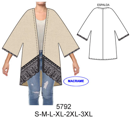 5792 TAPADO ESTILO KIMONO RUEDO ASIMETRICO, VISCOSA CON MACRAME Y CINTA DE ENCAJE$9.0$7.0TELA: VISCOSA – MACRAME – CINTA DE ENCAJEMaterial Choose an optionPapelCarton cortadoPDFTallas Choose an optionSMLXL2XL3XLClear - 5792 TAPADO ESTILO KIMONO RUEDO ASIMETRICO, VISCOSA CON MACRAME Y CINTA DE ENCAJE quantity + Add to cart SKU: 5792 Categories: Cardigan, Dama Description Additional information DescriptionTabla de medidas ¿Cómo imprimir moldes PDF?Additional informationMaterialPapel, Carton cortado, PDFTallasS, M, L, XL, 2XL, 3XLRelated products X214 CORTAVIENTO CORTO $9.0$7.0 Select options This product has multiple variants. The options may be chosen on the product page 4710 BLUSA SIN HOMBROS CON VUELO $9.0$7.0 Select options This product has multiple variants. The options may be chosen on the product page 4723 BLUSA MANGA KIMONO, LARGO ASIMETRICO COSTADO CURVO $9.0$7.0 Select options This product has multiple variants. The options may be chosen on the product page 4718 BLUSA RUEDO HOLGADO MANGA 3/4 $9.0$7.0 Select options This product has multiple variants. The options may be chosen on the product page