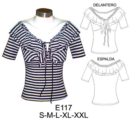 E117 POLERA CON CORTE BAJO BUSTO Y RUCHA EN ESCOTE$9.0$7.0Tela: Jersey, Lycra, Lycra nylon. Consumo talla m: tela: 1.05 mts. aprox. telas doblada a la mitad.Material Choose an optionPapelCarton cortadoPDFTallas Choose an optionSMLXL2XLClear - E117 POLERA CON CORTE BAJO BUSTO Y RUCHA EN ESCOTE quantity + Add to cart SKU: E117 Categories: Dama, Women's T-shirts Description Additional information DescriptionTabla de medidas ¿Cómo imprimir moldes PDF?Additional informationMaterialPapel, Carton cortado, PDFTallasS, M, L, XL, 2XLRelated products 4714 BLUSON CON ELASTICO EN ESCOTE, CORTES EN RUEDO Y MANGA PARA COMBINACIONES $9.0$7.0 Select options This product has multiple variants. The options may be chosen on the product page X215 CORTAVIENTO CON CORTES $9.0$7.0 Select options This product has multiple variants. The options may be chosen on the product page E621 POLERA CON CUELLO DRAPEADO ESCOTE V, MANGAS Y ESPALDA EN GASA, PUÑO CON ABERTURA Y AMARRAS $9.0$7.0 Select options This product has multiple variants. The options may be chosen on the product page 4712 BLUSA MANGA RAGLAN Y RUEDO AMPLIO SIN BOTONES $9.0$7.0 Select options This product has multiple variants. The options may be chosen on the product page