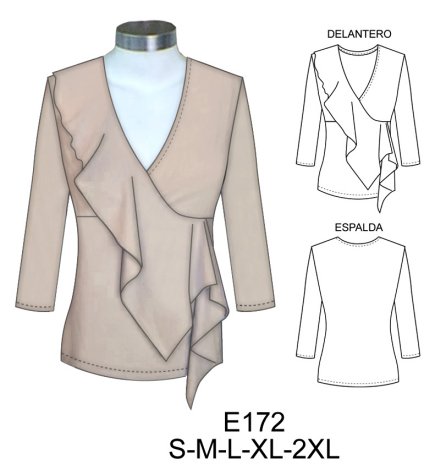 E172 POLERA CRUZADA CON VUELO EN ESCOTE Y DELANTERO$9.0$7.0Telas: Jérsey lycra. Consumo talla L: 1.10 MT. Aprox. Tela abierta.Material Choose an optionPapelCarton cortadoPDFTallas Choose an optionSMLXL2XLClear - E172 POLERA CRUZADA CON VUELO EN ESCOTE Y DELANTERO quantity + Add to cart SKU: E172 Categories: Dama, Women's T-shirts Description Additional information DescriptionTabla de medidas ¿Cómo imprimir moldes PDF?Additional informationMaterialPapel, Carton cortado, PDFTallasS, M, L, XL, 2XLRelated products 4699 BLUSA ESCOTE ESPALDA EN V CON DOBLE TIRANTES Y HOMBRO DESCUBIERTO $9.0$7.0 Select options This product has multiple variants. The options may be chosen on the product page 4718 BLUSA RUEDO HOLGADO MANGA 3/4 $9.0$7.0 Select options This product has multiple variants. The options may be chosen on the product page 4707 BLUSA MANGA 3/4 TIPO KIMONO CON AMARRA EN ESCOTE Y BOLSILLO EN DELANTERO $9.0$7.0 Select options This product has multiple variants. The options may be chosen on the product page 4715 BLUSA DOBLE VUELO, ESPALDA ESCOTADA $9.0$7.0 Select options This product has multiple variants. The options may be chosen on the product page