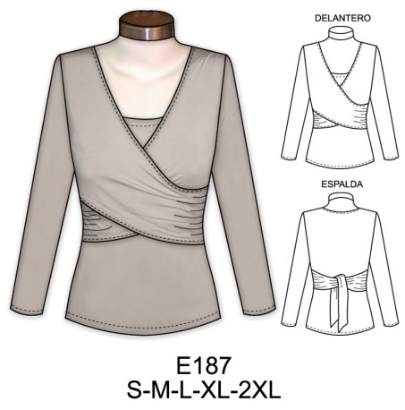 E187 POLERA CRUZADA CON DELANTERO INTERIOR$9.0$7.0Telas: jérsey lycra. Consumo talla: talla L 1.80 mts. Aprox.Material Choose an optionPapelCarton cortadoPDFTallas Choose an optionSMLXL2XLClear - E187 POLERA CRUZADA CON DELANTERO INTERIOR quantity + Add to cart SKU: E187 Categories: Dama, Women's T-shirts Description Additional information DescriptionTabla de medidas ¿Cómo imprimir moldes PDF?Additional informationMaterialPapel, Carton cortado, PDFTallasS, M, L, XL, 2XLRelated products E621 POLERA CON CUELLO DRAPEADO ESCOTE V, MANGAS Y ESPALDA EN GASA, PUÑO CON ABERTURA Y AMARRAS $9.0$7.0 Select options This product has multiple variants. The options may be chosen on the product page 4715 BLUSA DOBLE VUELO, ESPALDA ESCOTADA $9.0$7.0 Select options This product has multiple variants. The options may be chosen on the product page 4740 BLUSA ESCOTE “V” CON AMARRA, RECOGIDO EN DELANTERO Y ESPALDA MANGA 3/4, DISEÑO HOLGADO $9.0$7.0 Select options This product has multiple variants. The options may be chosen on the product page X215 CORTAVIENTO CON CORTES $9.0$7.0 Select options This product has multiple variants. The options may be chosen on the product page