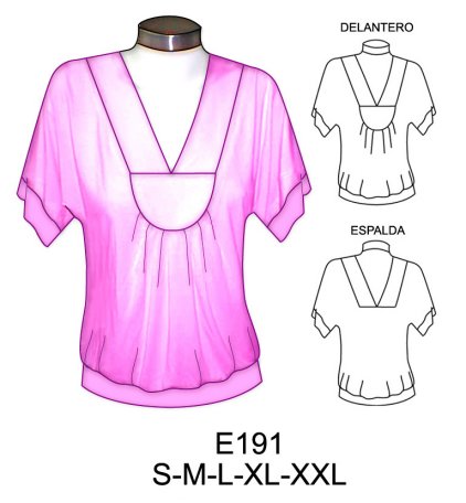 E191 POLERA ESCOTE EN V, HOLGADA CON MANGA TIPO KIMONO$9.0$7.0TELA :JERSEY LYCRA, LYCRA NYLONMaterial Choose an optionPapelCarton cortadoPDFTallas Choose an optionSMLXL2XLClear - E191 POLERA ESCOTE EN V, HOLGADA CON MANGA TIPO KIMONO quantity + Add to cart SKU: E191 Categories: Dama, Women's T-shirts Description Additional information DescriptionTabla de medidas ¿Cómo imprimir moldes PDF?Additional informationMaterialPapel, Carton cortado, PDFTallasS, M, L, XL, 2XLRelated products E94 POLERA CON CUELLO Y CANESU PLIZADO $9.0$7.0 Select options This product has multiple variants. The options may be chosen on the product page 4707 BLUSA MANGA 3/4 TIPO KIMONO CON AMARRA EN ESCOTE Y BOLSILLO EN DELANTERO $9.0$7.0 Select options This product has multiple variants. The options may be chosen on the product page 4718 BLUSA RUEDO HOLGADO MANGA 3/4 $9.0$7.0 Select options This product has multiple variants. The options may be chosen on the product page E90 POLERA ESCOTE EN V CON RUCHAS Y CORTE CENTRAL MANGA 3/4 $9.0$7.0 Select options This product has multiple variants. The options may be chosen on the product page