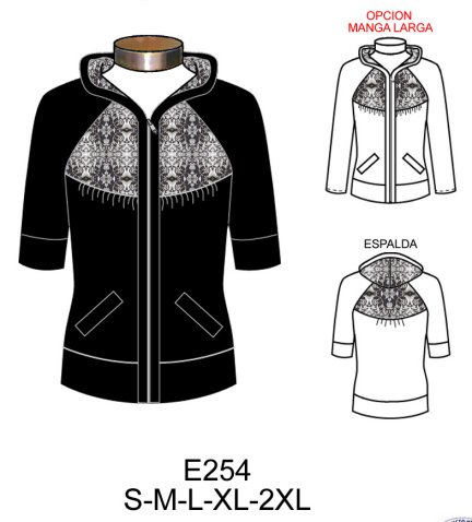 E254 POLERA CON GORRO Y CIERRE EN EL MEDIO MANGA 3/4 CON OPCION A MANGA LARGA$9.0$7.0TELA : JERSEY LYCRA, LYCRA ALGODONMaterial Choose an optionPapelCarton cortadoPDFTallas Choose an optionSMLXL2XLClear - E254 POLERA CON GORRO Y CIERRE EN EL MEDIO MANGA 3/4 CON OPCION A MANGA LARGA quantity + Add to cart SKU: E254 Categories: Dama, Women's T-shirts Description Additional information DescriptionTabla de medidas ¿Cómo imprimir moldes PDF?Additional informationMaterialPapel, Carton cortado, PDFTallasS, M, L, XL, 2XLRelated products 4711 BLUSA MANGA 3/4 CON AMARRA EN ESCOTE Y BOTONES $9.0$7.0 Select options This product has multiple variants. The options may be chosen on the product page 4744 BLUSA ESTILO OVERSIZE $9.0$7.0 Select options This product has multiple variants. The options may be chosen on the product page 4699 BLUSA ESCOTE ESPALDA EN V CON DOBLE TIRANTES Y HOMBRO DESCUBIERTO $9.0$7.0 Select options This product has multiple variants. The options may be chosen on the product page 4718 BLUSA RUEDO HOLGADO MANGA 3/4 $9.0$7.0 Select options This product has multiple variants. The options may be chosen on the product page
