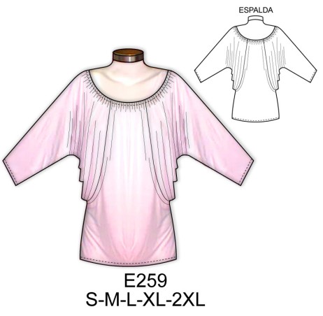 E259 POLERA CON CUELLO REDONDO CON MANGA TIPO KIMONO$9.0$7.0TELA : JERSEY LYCRA, LYCRA ALGODONMaterial Choose an optionPapelCarton cortadoPDFTallas Choose an optionSMLXL2XLClear - E259 POLERA CON CUELLO REDONDO CON MANGA TIPO KIMONO quantity + Add to cart SKU: E259 Categories: Dama, Women's T-shirts Description Additional information DescriptionTabla de medidas ¿Cómo imprimir moldes PDF?Additional informationMaterialPapel, Carton cortado, PDFTallasS, M, L, XL, 2XLRelated products 4710 BLUSA SIN HOMBROS CON VUELO $9.0$7.0 Select options This product has multiple variants. The options may be chosen on the product page 4706 BLUSA MANGA 3/4 Y DOBLE FALDON CON VUELO Y AMARRA EN LA ESPALDA $9.0$7.0 Select options This product has multiple variants. The options may be chosen on the product page 4707 BLUSA MANGA 3/4 TIPO KIMONO CON AMARRA EN ESCOTE Y BOLSILLO EN DELANTERO $9.0$7.0 Select options This product has multiple variants. The options may be chosen on the product page 4723 BLUSA MANGA KIMONO, LARGO ASIMETRICO COSTADO CURVO $9.0$7.0 Select options This product has multiple variants. The options may be chosen on the product page