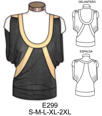 E299 POLERA ESCOTE REDONDO MANGA KIMONO$9.0$7.0Tela: Jersey, lycra. Consumo talla l: tela negra: 1 MT. aprox. tela dorada: 40 cms. aprox.Material Choose an optionPapelCarton cortadoPDFTallas Choose an optionSMLXL2XLClear - E299 POLERA ESCOTE REDONDO MANGA KIMONO quantity + Add to cart SKU: E299 Categories: Dama, Women's T-shirts Description Additional information DescriptionTabla de medidas ¿Cómo imprimir moldes PDF?Additional informationMaterialPapel, Carton cortado, PDFTallasS, M, L, XL, 2XLRelated products X195 POLERON LARGO CORTE PRINCESA, GORRO DESBOCADO $9.0$7.0 Select options This product has multiple variants. The options may be chosen on the product page 4723 BLUSA MANGA KIMONO, LARGO ASIMETRICO COSTADO CURVO $9.0$7.0 Select options This product has multiple variants. The options may be chosen on the product page 4707 BLUSA MANGA 3/4 TIPO KIMONO CON AMARRA EN ESCOTE Y BOLSILLO EN DELANTERO $9.0$7.0 Select options This product has multiple variants. The options may be chosen on the product page 4694 BLUSA CON APLICACION EN MACRAME Y RUEDO AMPLIO $9.0$7.0 Select options This product has multiple variants. The options may be chosen on the product page