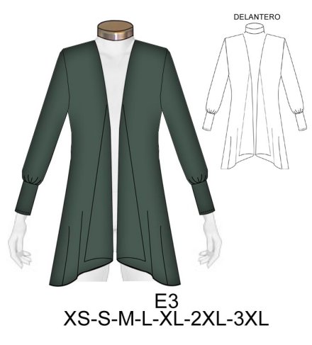 TAPADO CO MANGA CON PUÑO$9.0$7.0CONSUMO TELA 1.50 METROS APROX. TALLA (L) TELA :JERSEY LYCRA, LYCRA NYLONMaterial Choose an optionPapelCarton cortadoPDFTallas Choose an optionXSSMLXL2XL3XLClear - TAPADO CO MANGA CON PUÑO quantity + Add to cart SKU: E3 Categories: Cardigan, Dama, Women's T-shirts Description Additional information DescriptionTabla de medidas ¿Cómo imprimir moldes PDF?Additional informationMaterialPapel, Carton cortado, PDFTallasXS, S, M, L, XL, 2XL, 3XLRelated products E93 POLERA CON VUELOS MANGA LARGA $9.0$7.0 Select options This product has multiple variants. The options may be chosen on the product page 4730 BLUSA CON CUELLO CRUZADO PLIEGUE CENTRAL, RUEDO SEMI EVASE $9.0$7.0 Select options This product has multiple variants. The options may be chosen on the product page 4711 BLUSA MANGA 3/4 CON AMARRA EN ESCOTE Y BOTONES $9.0$7.0 Select options This product has multiple variants. The options may be chosen on the product page 4744 BLUSA ESTILO OVERSIZE $9.0$7.0 Select options This product has multiple variants. The options may be chosen on the product page