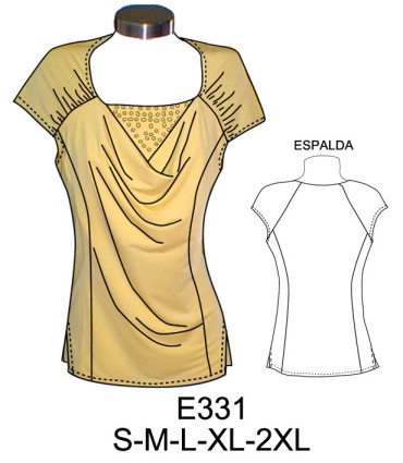 E331 POLERA DAMA MEDIA MANGA CORTE PRINCESA DELANTERO$9.0$7.0DRAPEADO CON FALSO INTERIOR .CONSUMO 1 METRO (T.L) TELA JERSEY LYCRA – LYCRA NYLONMaterial Choose an optionPapelCarton cortadoPDFTallas Choose an optionSMLXL2XLClear - E331 POLERA DAMA MEDIA MANGA CORTE PRINCESA DELANTERO quantity + Add to cart SKU: E331 Categories: Dama, Women's T-shirts Description Additional information DescriptionTabla de medidas ¿Cómo imprimir moldes PDF?Additional informationMaterialPapel, Carton cortado, PDFTallasS, M, L, XL, 2XLRelated products 4706 BLUSA MANGA 3/4 Y DOBLE FALDON CON VUELO Y AMARRA EN LA ESPALDA $9.0$7.0 Select options This product has multiple variants. The options may be chosen on the product page 4707 BLUSA MANGA 3/4 TIPO KIMONO CON AMARRA EN ESCOTE Y BOLSILLO EN DELANTERO $9.0$7.0 Select options This product has multiple variants. The options may be chosen on the product page 4718 BLUSA RUEDO HOLGADO MANGA 3/4 $9.0$7.0 Select options This product has multiple variants. The options may be chosen on the product page 4740 BLUSA ESCOTE “V” CON AMARRA, RECOGIDO EN DELANTERO Y ESPALDA MANGA 3/4, DISEÑO HOLGADO $9.0$7.0 Select options This product has multiple variants. The options may be chosen on the product page