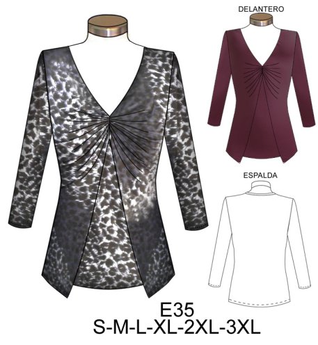 E35 POLERA MANGA 3/4 ESCOTE EN V CON CAPA PLIZADA$9.0$7.0CONSUMO TELA 1.50 METROS APROX. TALLA (L) TELA :JERSEY LYCRA, LYCRA NYLONMaterial Choose an optionPapelCarton cortadoPDFTallas Choose an optionSMLXL2XL3XLClear - E35 POLERA MANGA 3/4 ESCOTE EN V CON CAPA PLIZADA quantity + Add to cart SKU: E35 Categories: Dama, Women's T-shirts Description Additional information DescriptionTabla de medidas ¿Cómo imprimir moldes PDF?Additional informationMaterialPapel, Carton cortado, PDFTallasS, M, L, XL, 2XL, 3XLRelated products 4710 BLUSA SIN HOMBROS CON VUELO $9.0$7.0 Select options This product has multiple variants. The options may be chosen on the product page X214 CORTAVIENTO CORTO $9.0$7.0 Select options This product has multiple variants. The options may be chosen on the product page E90 POLERA ESCOTE EN V CON RUCHAS Y CORTE CENTRAL MANGA 3/4 $9.0$7.0 Select options This product has multiple variants. The options may be chosen on the product page X215 CORTAVIENTO CON CORTES $9.0$7.0 Select options This product has multiple variants. The options may be chosen on the product page
