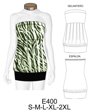 E400 POLERA STRAPLESS GLOBO$9.0$7.0CONSUMO TELA 0.85 METROS APROX. TALLA (M) TELA :LYCRA ALGODON, JERSEY LYCRAMaterial Choose an optionPapelCarton cortadoPDFTallas Choose an optionSMLXL2XLClear - E400 POLERA STRAPLESS GLOBO quantity + Add to cart SKU: E400 Categories: Dama, Women's T-shirts Description Additional information DescriptionTabla de medidas ¿Cómo imprimir moldes PDF?Additional informationMaterialPapel, Carton cortado, PDFTallasS, M, L, XL, 2XLRelated products 4744 BLUSA ESTILO OVERSIZE $9.0$7.0 Select options This product has multiple variants. The options may be chosen on the product page 4712 BLUSA MANGA RAGLAN Y RUEDO AMPLIO SIN BOTONES $9.0$7.0 Select options This product has multiple variants. The options may be chosen on the product page 4707 BLUSA MANGA 3/4 TIPO KIMONO CON AMARRA EN ESCOTE Y BOLSILLO EN DELANTERO $9.0$7.0 Select options This product has multiple variants. The options may be chosen on the product page 4699 BLUSA ESCOTE ESPALDA EN V CON DOBLE TIRANTES Y HOMBRO DESCUBIERTO $9.0$7.0 Select options This product has multiple variants. The options may be chosen on the product page