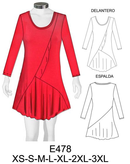 E478 VESTIDO ASIMETRICO CON VUELOS EN DELANTERO Y ESPALDA , LARGO 85 CMS$9.0$7.0CONSUMO TELA 1.50 METROS TALLA (L) APROX TELA : JERSEY ELASTICADOMaterial Choose an optionPapelCarton cortadoPDFTallas Choose an optionXSSMLXL2XL3XLClear - E478 VESTIDO ASIMETRICO CON VUELOS EN DELANTERO Y ESPALDA , LARGO 85 CMS quantity + Add to cart SKU: E478 Categories: Dama, Dresses, Women's T-shirts Description Additional information DescriptionTabla de medidas ¿Cómo imprimir moldes PDF?Additional informationMaterialPapel, Carton cortado, PDFTallasXS, S, M, L, XL, 2XL, 3XLRelated products 4738 BLUSA ESTILO TAPADO CON AMARRA, ESPALDA CON PLIEGUE ENCONTRADO $9.0$7.0 Select options This product has multiple variants. The options may be chosen on the product page E94 POLERA CON CUELLO Y CANESU PLIZADO $9.0$7.0 Select options This product has multiple variants. The options may be chosen on the product page 4707 BLUSA MANGA 3/4 TIPO KIMONO CON AMARRA EN ESCOTE Y BOLSILLO EN DELANTERO $9.0$7.0 Select options This product has multiple variants. The options may be chosen on the product page 4730 BLUSA CON CUELLO CRUZADO PLIEGUE CENTRAL, RUEDO SEMI EVASE $9.0$7.0 Select options This product has multiple variants. The options may be chosen on the product page