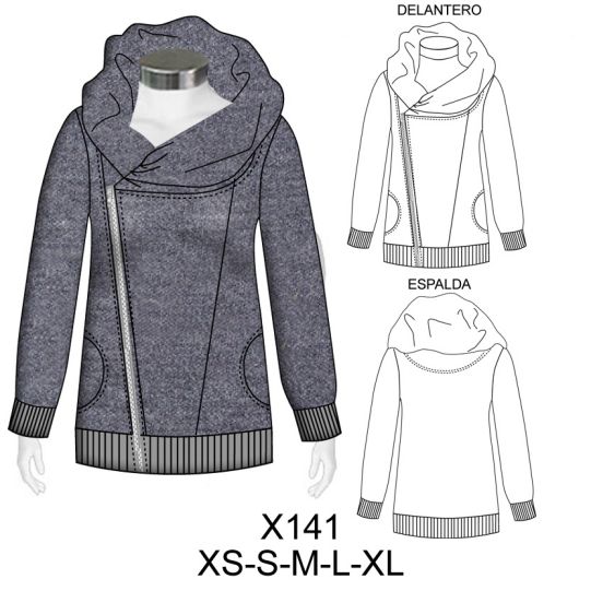 X141 POLERON CON CIERRE CUELLO GLOBO$9.0$7.0CONSUMO TELA 1.90 METROS TALLA M APROX. CONSUMO RIB 0.40 METROS TALLA M APROX TELA : FRANELA -RIBMaterial Choose an optionPapelCarton cortadoPDFTallas Choose an optionXSSMLXLClear - X141 POLERON CON CIERRE CUELLO GLOBO quantity + Add to cart SKU: X141 Categories: Dama, Women's jacket Description Additional information DescriptionTabla de medidas ¿Cómo imprimir moldes PDF?Additional informationMaterialPapel, Carton cortado, PDFTallasXS, S, M, L, XLRelated products X214 CORTAVIENTO CORTO $9.0$7.0 Select options This product has multiple variants. The options may be chosen on the product page 4730 BLUSA CON CUELLO CRUZADO PLIEGUE CENTRAL, RUEDO SEMI EVASE $9.0$7.0 Select options This product has multiple variants. The options may be chosen on the product page 4699 BLUSA ESCOTE ESPALDA EN V CON DOBLE TIRANTES Y HOMBRO DESCUBIERTO $9.0$7.0 Select options This product has multiple variants. The options may be chosen on the product page X195 POLERON LARGO CORTE PRINCESA, GORRO DESBOCADO $9.0$7.0 Select options This product has multiple variants. The options may be chosen on the product page
