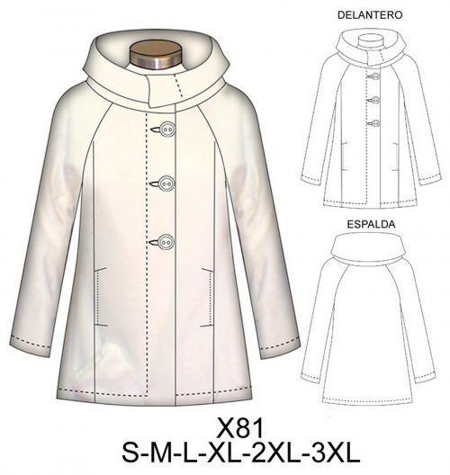 X81 CHAQUETON MANGA RAGLAN, CUELLO GRANDE DOBLADO ABOTONADO EN COSTADO$9.0$7.0CONSUMO TELA 1.60 METROS TALLA (L) TELA :POLARMaterial Choose an optionPapelCarton cortadoPDFTallas Choose an optionSMLXL2XL3XLClear - X81 CHAQUETON MANGA RAGLAN, CUELLO GRANDE DOBLADO ABOTONADO EN COSTADO quantity + Add to cart SKU: X81 Categories: Dama, Women's jacket Description Additional information DescriptionTabla de medidas ¿Cómo imprimir moldes PDF?Additional informationMaterialPapel, Carton cortado, PDFTallasS, M, L, XL, 2XL, 3XLRelated products E94 POLERA CON CUELLO Y CANESU PLIZADO $9.0$7.0 Select options This product has multiple variants. The options may be chosen on the product page X195 POLERON LARGO CORTE PRINCESA, GORRO DESBOCADO $9.0$7.0 Select options This product has multiple variants. The options may be chosen on the product page 4718 BLUSA RUEDO HOLGADO MANGA 3/4 $9.0$7.0 Select options This product has multiple variants. The options may be chosen on the product page X215 CORTAVIENTO CON CORTES $9.0$7.0 Select options This product has multiple variants. The options may be chosen on the product page