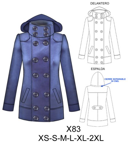 X83 CHAQUETON POLAR CRUZADO PRETINA ANCHA Y GORRO DESMONTABLE$9.0$7.0(LARGO REF. 75 CMS. TALLA M) CONSUMO TELA 2.15 METROS TALLA (L) TELA :FRANELA – POLARMaterial Choose an optionPapelCarton cortadoPDFTallas Choose an optionXSSMLXL2XLClear - X83 CHAQUETON POLAR CRUZADO PRETINA ANCHA Y GORRO DESMONTABLE quantity + Add to cart SKU: X83 Categories: Coats, Dama, Women's jacket Description Additional information DescriptionTabla de medidas ¿Cómo imprimir moldes PDF?Additional informationMaterialPapel, Carton cortado, PDFTallasXS, S, M, L, XL, 2XLRelated products X195 POLERON LARGO CORTE PRINCESA, GORRO DESBOCADO $9.0$7.0 Select options This product has multiple variants. The options may be chosen on the product page 4723 BLUSA MANGA KIMONO, LARGO ASIMETRICO COSTADO CURVO $9.0$7.0 Select options This product has multiple variants. The options may be chosen on the product page 4744 BLUSA ESTILO OVERSIZE $9.0$7.0 Select options This product has multiple variants. The options may be chosen on the product page 4694 BLUSA CON APLICACION EN MACRAME Y RUEDO AMPLIO $9.0$7.0 Select options This product has multiple variants. The options may be chosen on the product page